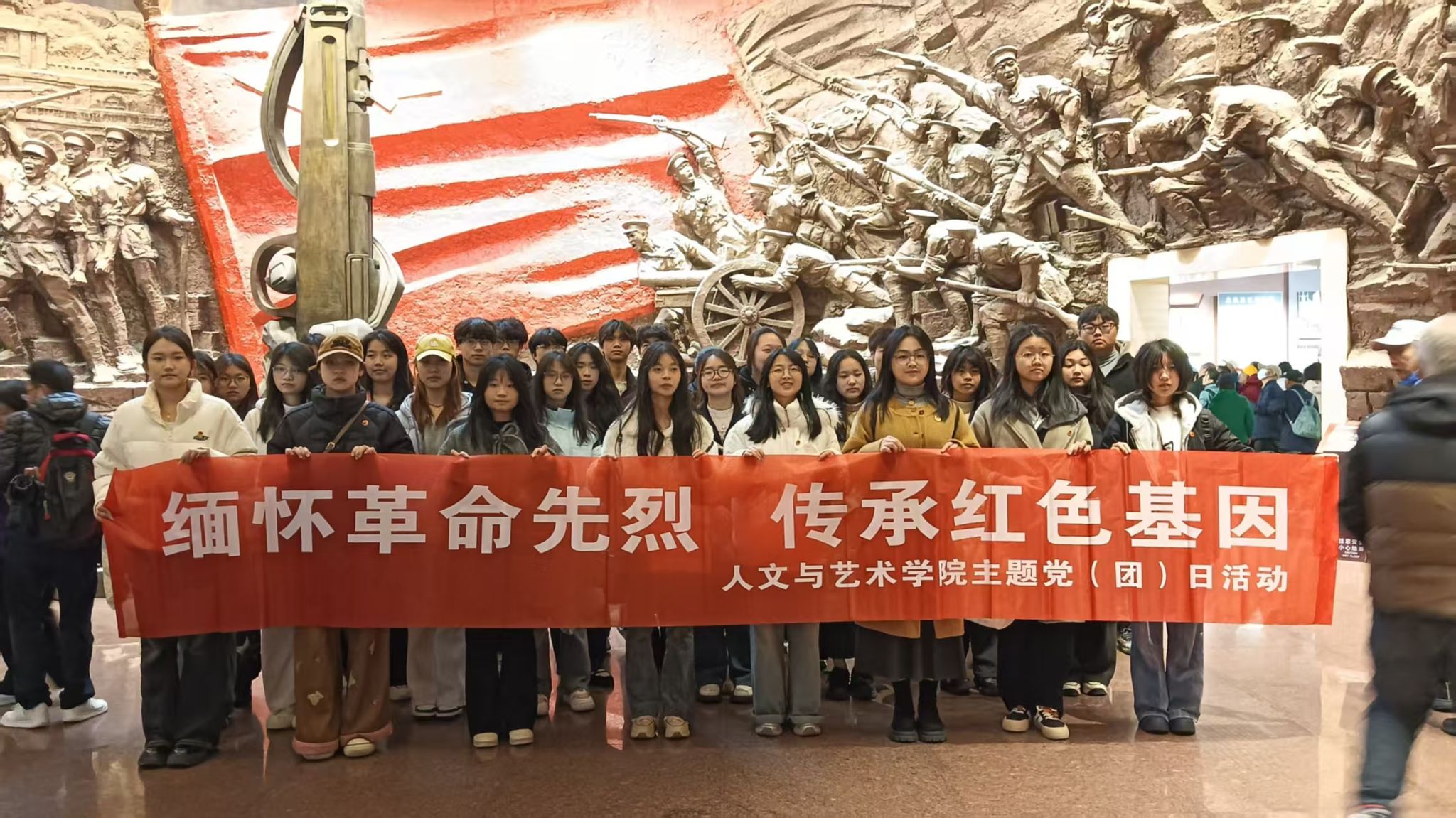 为传承红色基因,弘扬革命精神,厚植师生的爱党爱国情怀,3月29日,人文与艺术学院组织学生党员、团员青年一起前往南昌八一起义纪念馆,开展“缅怀革命先烈,传承红色基因”清明祭英烈主题党(团)日活动。