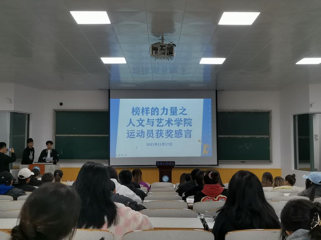 为深入学习先进典型、汲取榜样力量,发扬体育运动精神,人文与艺术学院于11月17日中午12:15在教学南大楼C105开展了运动员获奖分享交流会,人文与艺术学院团委副书记丁蓓蒂、辅导员黄一诺、张淑华出席此次会议,我院获奖运动员以及全体学生干部参加。