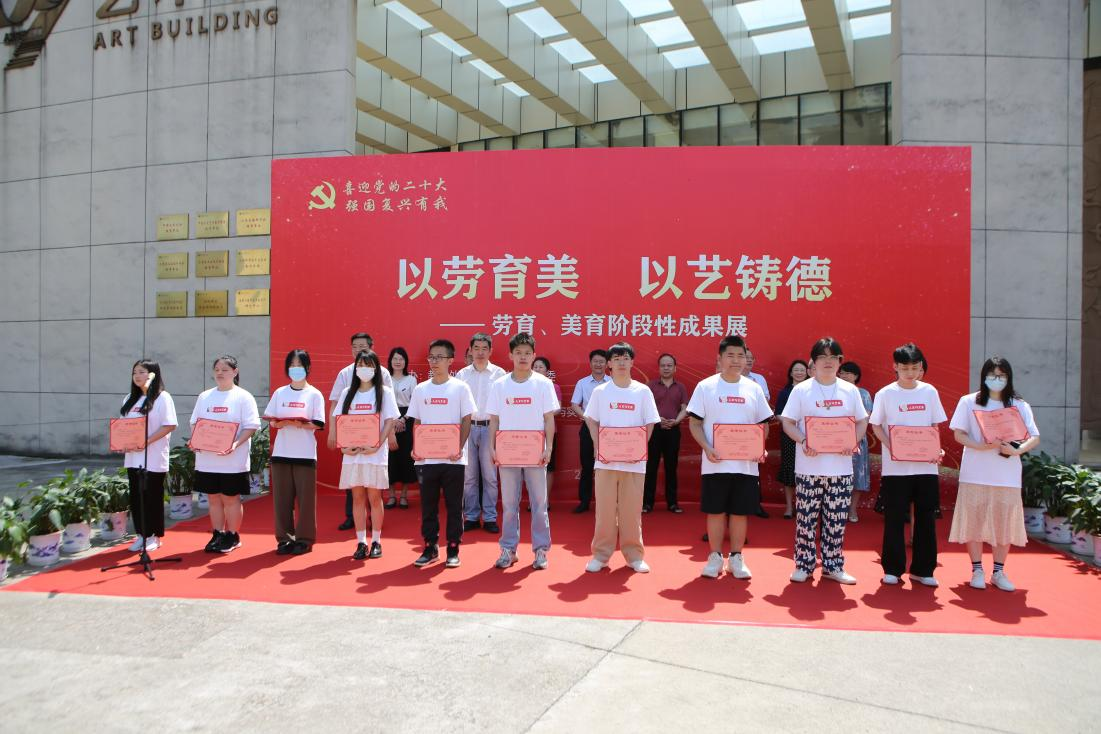 6月8日,我校举办“以劳育美 以艺铸德”劳动教育、美育教育阶段性成果展,深入学习贯彻习近平新时代中国特色社会主义思想,落实党中央和总书记坚持立德树人要求,推动“德智体美劳”五育并举、提升校园文化建设品质,以实际行动迎接党的二十大胜利召开。此次展览由人文与艺术学院承办,全面展示学校“专业+”劳育、美育实践活动的阶段性成果。出席本次展览活动的校领导有:校长汪胜前、副书记吴泽俊、副校长李培生、纪委书记殷安全、副校长周敏丹、副校长陆伟锋。纪委书记殷安全主持开幕式,副校长陆伟锋发表讲话,校长汪胜前宣布展览开幕。教务处、党委宣传部、工会、团委、学生工作部(处)、资产与实验室管理处、后勤保障处、保卫处、教育教学评估中心等部门负责人以及人文与艺术学院50名师生代表参加活动。
