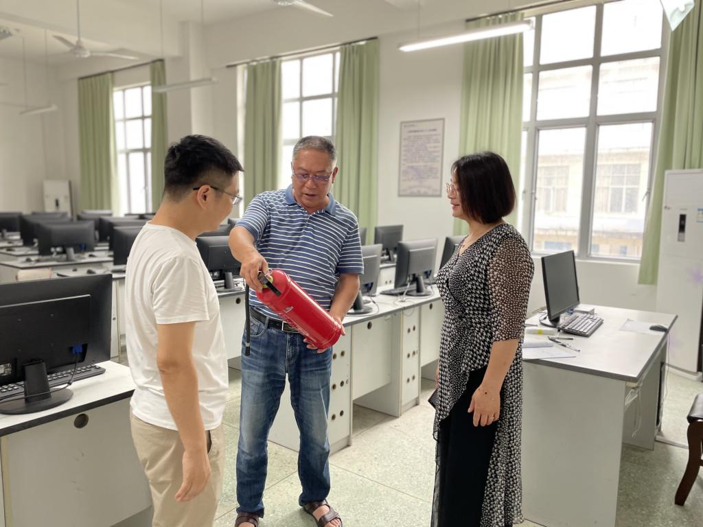 在检查过程中,黄春燕副院长对每个实验室的消防设备、消防安全管理逐一进行检查;同时也指出了实验室环境卫生方面有及学生使用空调方面的问题,现场就责令相关负责人进行整改。