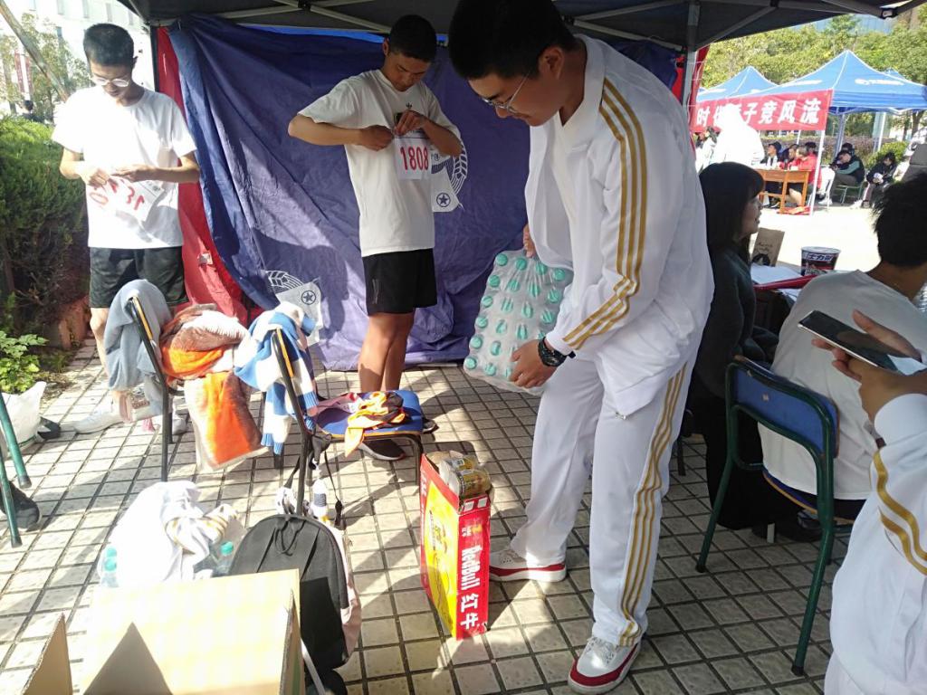 10月21日下午,由学生会文体部牵头,各部门学生干部抵达学生宿舍1栋超市将所需物资提前搬至艺术楼A114,以保证物资充足。10月22日清晨,学生干部将物资搬至我院服务台。在运动员入场前,后勤服务人员为运动员们更换服装、贴号码牌、帮助他们进行相应项目的热身工作;赛中,文体部学生干部在终点处迎接,提供保暖毛巾。在物资发放和后勤服务期间,各部门各司其职,相互配合,以保证工作顺利进行,为参赛人员提供充分合理的后勤保障和温暖的关怀;赛后,组织学生干部将剩余物资搬回艺术楼A114,防止物资丢失和浪费。