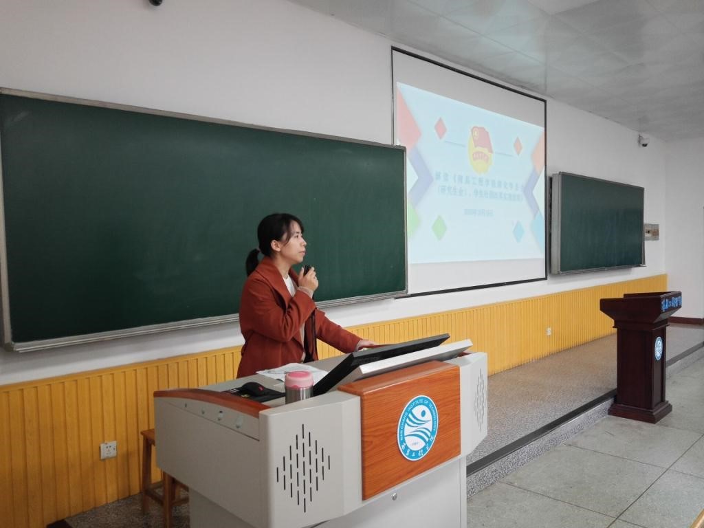 丁老师对《南昌工程学院深化学生会(研究生会)、学生社团改革实施细则》进行解读。首先详细介绍了本次学生会改革的政策依据,也简单介绍了中共教育部党组、共青团中央《高校学生社团建设管理办法》和学校内出台的一些政策文件。随后从强化党的领导、改革运行机制、精简组织机构、提升学生干部标准等七个方面对这些政策文件进行详细解读。