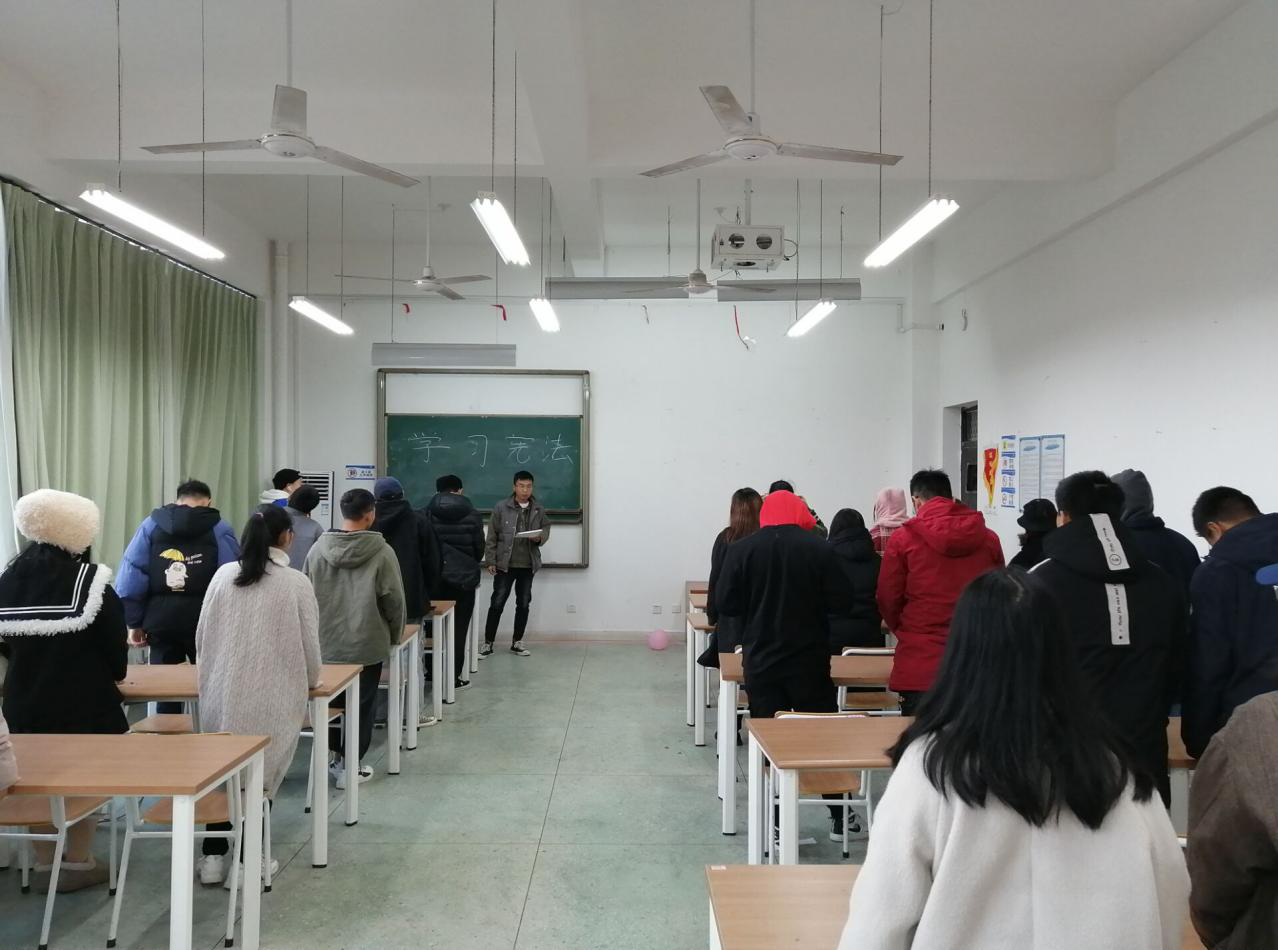 为认真落实习近平总书记关于宪法学习宣传教育,12月4日上午7点20到8点,我院于艺术楼各教室组织大一全体新生开展“新生朗读宪法”教育活动。