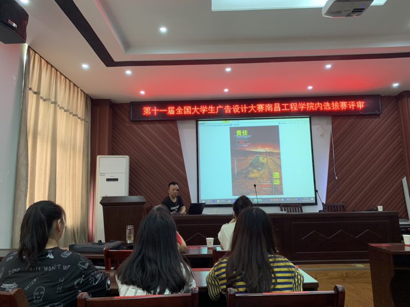 6月26日上午,南昌工程学院第十二届全国大学生广告艺术大赛评审活动于艺术楼A230举行。此次比赛由丁蓓蒂老师负责,担任本次大赛的评委老师有视觉传达教研室主任陈檀,周行,吴初平等相关专业老师,和学生评审5人。