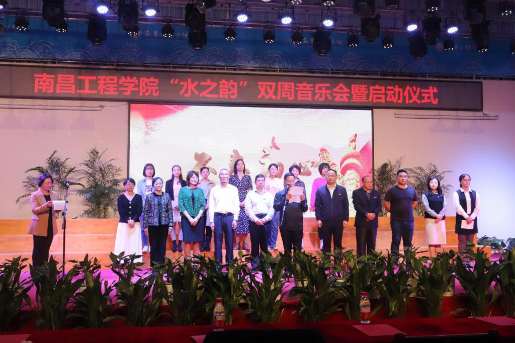 为进一步推动实践教学改革,提高音乐学专业学生技能技巧,同时加强学校美育教育,打造校园文化活动精品,由教务处、党委宣传部、校团委以及人文与艺术学院面向全校共同推出的“水之韵”双周音乐会暨启动仪式于2020年10月13日19:00在大学生活动中心多功能厅举行。党委副书记吴泽俊、副校长汪胜前、党委宣传部、校团委负责人以及人文与艺术学院领导班子成员、专业教师和音乐学专业全体学生参加了本次活动。